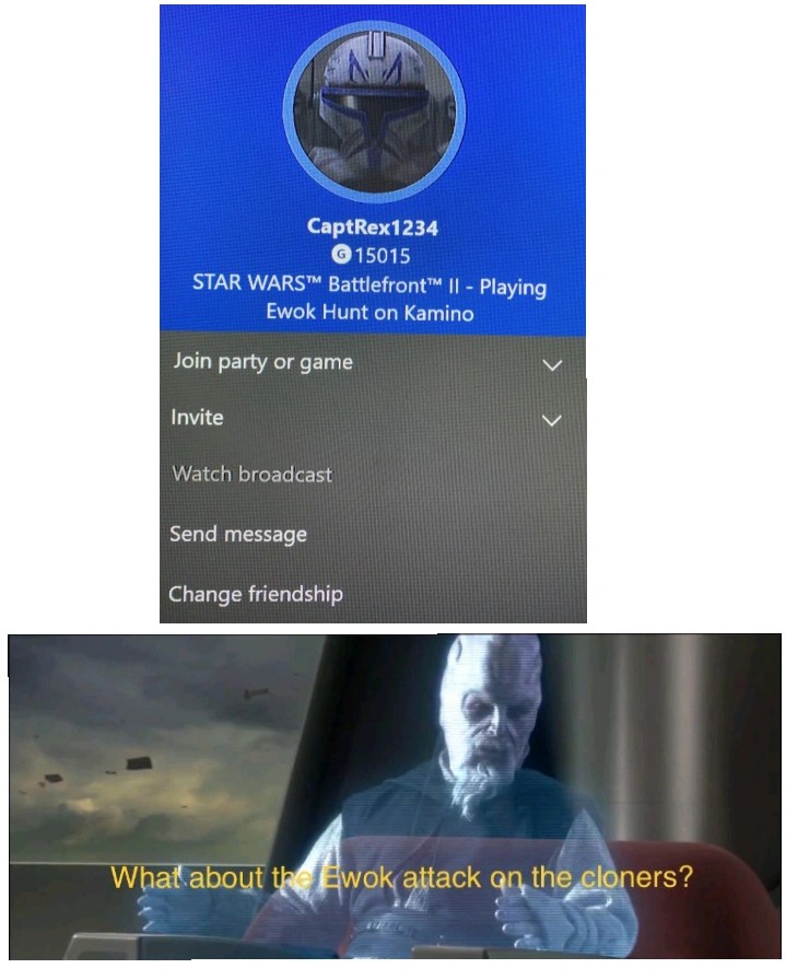 The most recent of these, added this week, is “ewok hunt,” which tasks a group of stormtroopers, left on endor the night the death star ii . It's not meme review, it's meme time. Includes ksi stream highlights playing ewok hunt xd. An image tagged blank template,star wars,star wars battlefront,memes,vietnam. Log in sign up · gaming · just . Star wars battlefront ii is free over on the @epicgames store later. This is the place to discover the latest memes for sharing and to grow your meme collection. A new hunting ground is coming to ewok hunt in star wars™ battlefront™ ii. In star wars battlefront 2. This spawned memes where people underscored the idea that the . Ewok hunt from reddit tagged as ewok meme. When there are only 2 people left in ewok hunt and ur running towards the ship. Ewoks have been a part of star wars battlefront ii since ewok hunt was available, but it looks like the developers are planning of bringing.